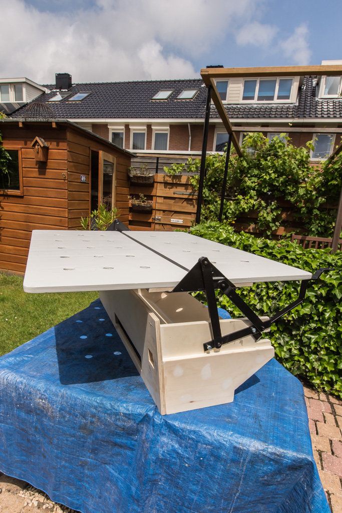 Maar voordat het zover was moest er wel eerst een bedbank komen. Aernout begon aan het project en was er weekeinden mee bezig. Het resultaat mag er dan ook zijn en ook nog eens helemaal zelf gemaakt! De 13 ramen van de bus vroegen vervolgens om gordijntjes want wakker worden in zo’n vissenkom is natuurlijk helemaal niks. 18 stuks gordijntjes maakte ik in één week tijd (2 voor elk raam met uitzondering van de 4 helemaal voorin) en een half uur voor vertrek (wat een stress) hingen ze allemaal.