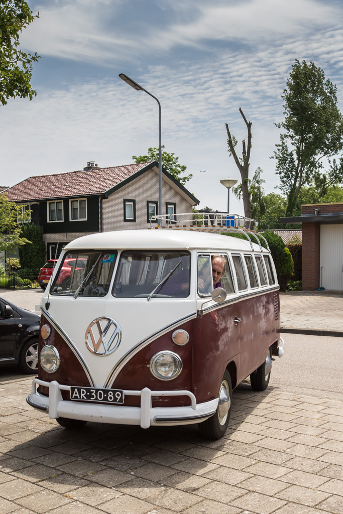 Het afgelopen jaar (aug 2014 – augustus 2015) is een uiterst productief jaar geweest voor Aernout en onze 1966 T1 VW bus. Na maanden de binnenkant te hebben schoon gepoetst (minutieus alle verflagen & al het roest verwijderen) moest vorig najaar plotseling de motor vervangen worden en kwam er ineens vaart in de zaak. De aandacht moest onverwachts worden verlegd…. Op weg naar een groot evenement in Spa vorig jaar augustus (2014) hield de originele motor er vlak voor de eindstreep mee op. Het sterke klimmen op de Belgische snelwegen bleek iets teveel gevraagd van onze oldtimer. Met tussenkomst van de ANWB kwam de bus op een grote trailer uiteindelijk na ruim een week weer thuis (Aernout had gelukkig in de VW bus van één van de “busboys” een plaatsje kunnen bemachtigen voor de terugreis). Niet tussen de aardbeitjes in Lisserbroek – haar vaste standplaats – maar op uitdrukkelijk verzoek van de hulpdienst bij een garage in de buurt. Er volgden maanden van eerst zoeken naar een goede gereviseerde motor en later maanden van wachten op de nieuwe motor. Ondertussen werkte Aernout hard in de garage van Frank waar de bus in de wintermaanden overdekt mocht staan. De elektrische bekabeling werd grondig aangepakt (ja Aernout kreeg het voor elkaar ook de achterlichten te laten knipperen!) en de motorruimte zorgvuldig schoongemaakt. Toen eindelijk de gereviseerde motor arriveerde begon de grote klus om de bus weer rijdend te krijgen. Dat betekende vele avonden sleutelen om met hulp van Frank (zonder hem was deze klus echt nooit gelukt!) de motor niet alleen terug geplaatst te krijgen maar ook weer draaiend. In april dan eindelijk dé test – met de VW naar buiten naar het strand van Bloemendaal! Wat heerlijk om weer de weg op te kunnen en wat is het ineens stil binnen…..