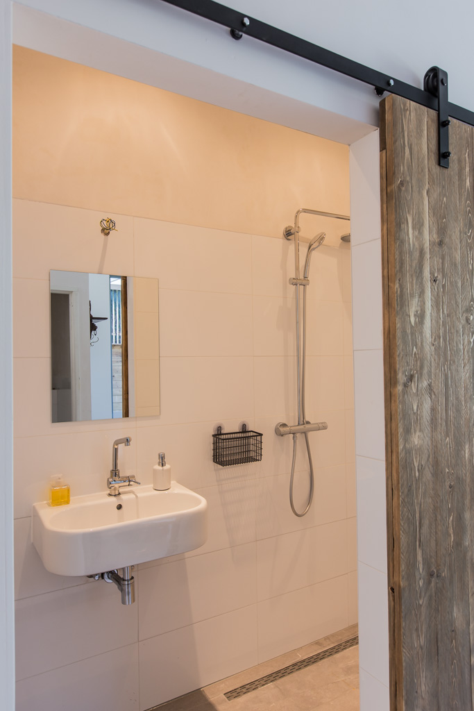 De tweede ruimte bestaat uit een riante woonkeuken met afzonderlijk toilet en een afzonderlijke douche ruimte. Verder via zeer ruime openslaande deuren toegang tot de tuin/terras (3 x 10m).